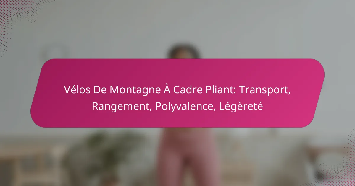 Pour choisir un vélo de montagne à cadre pliant, il est essentiel de considérer l’utilisation prévue, le poids, les matériaux du cadre et les équipements compatibles. Ces facteurs influencent non seulement la performance, mais aussi la facilité de transport et de rangement.